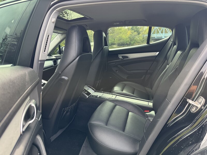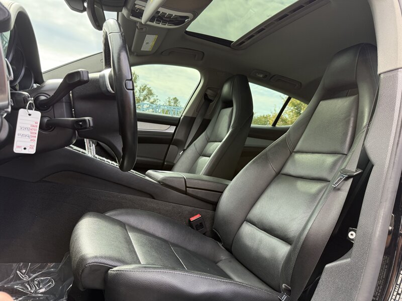 The sleek and sophisticated exterior is finished in a striking black that complements the Panamera's elegant lines and athletic stance. The vehicle's bold design is accentuated by signature Porsche styling, making it a true head-turner on the road.